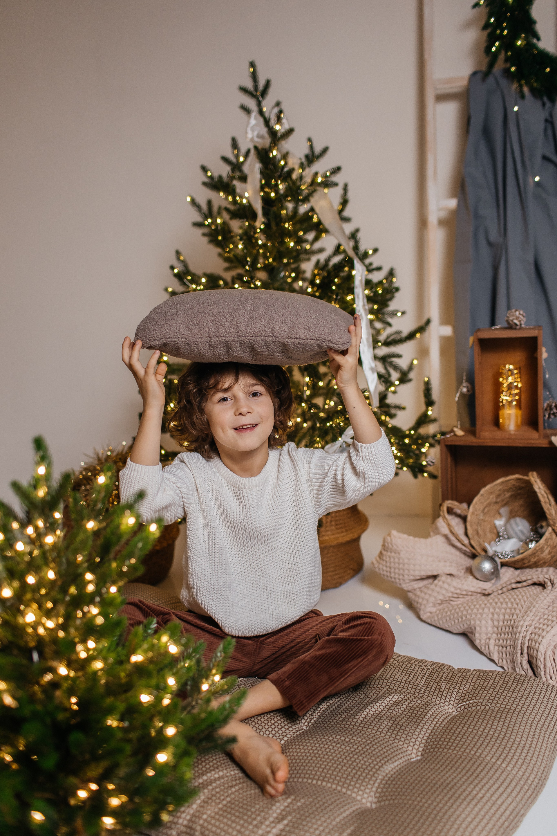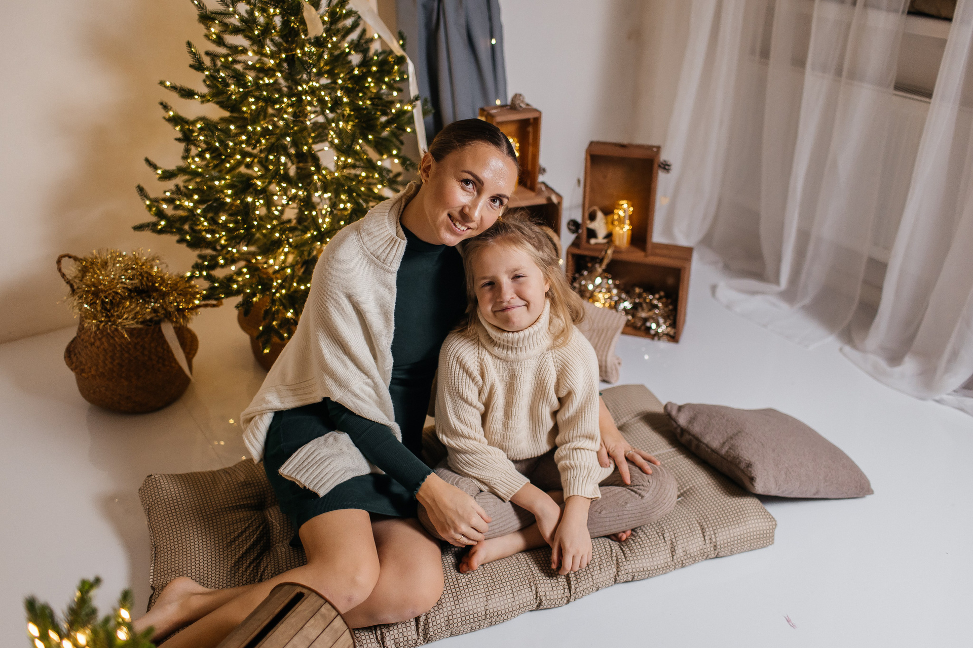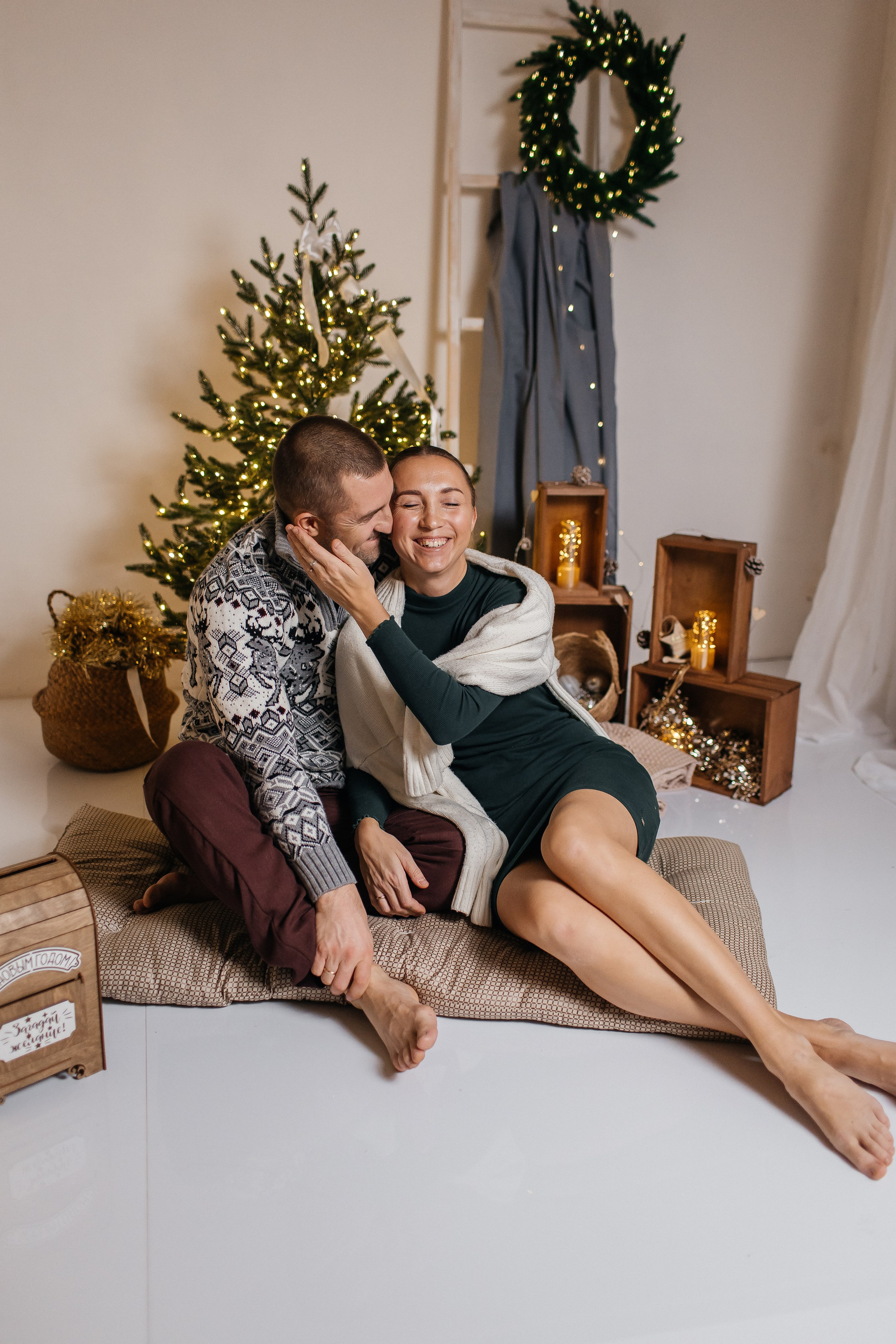 За 40 минут мы вполне успеем отснять оба варианта. Первый образ может быть праздничным. Второй домашний, уютный.
